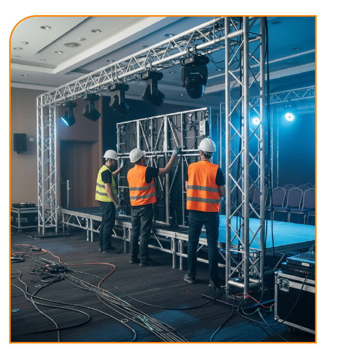 - Locação de equipamentos de áudio, vídeo, iluminação, painéis de LED e soluções interativas, com tecnologia de ponta e suporte técnico especializado.
